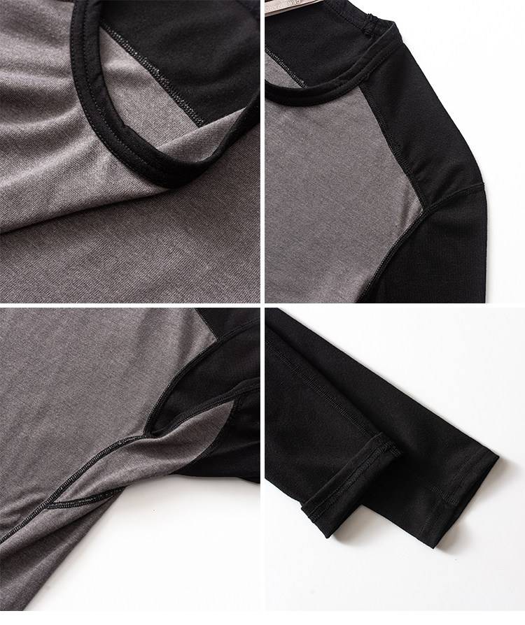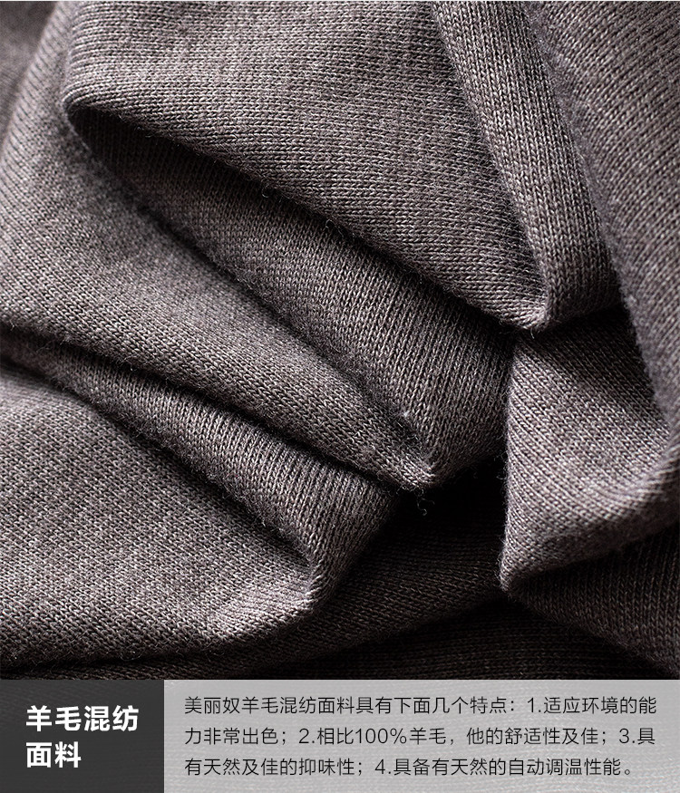Merino wool blended warm T-shirt spring and autumn men's round neck long sleeve slim casual breathable cotton to control temperature and humidity