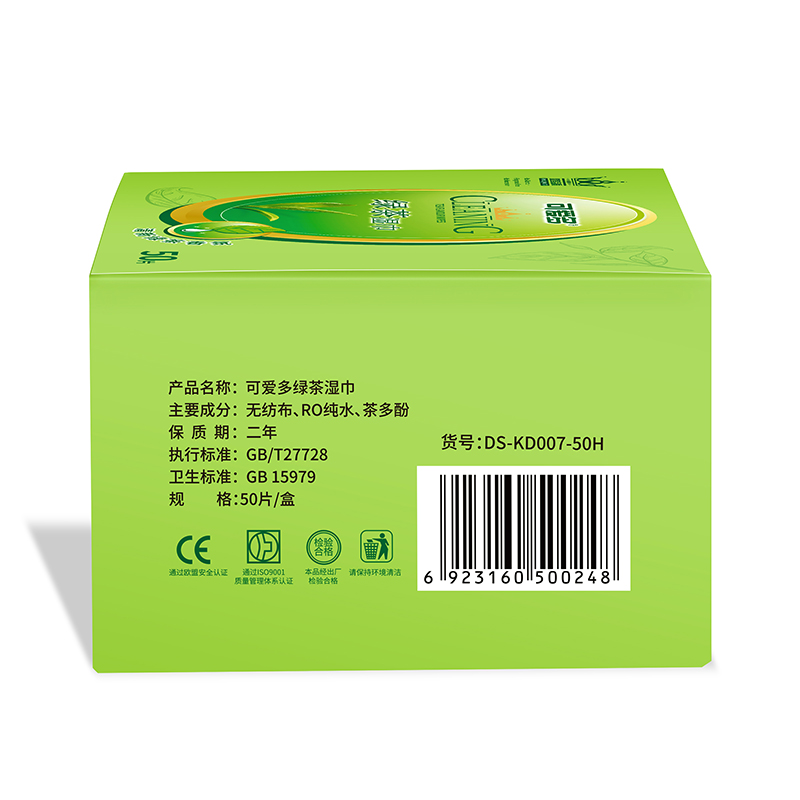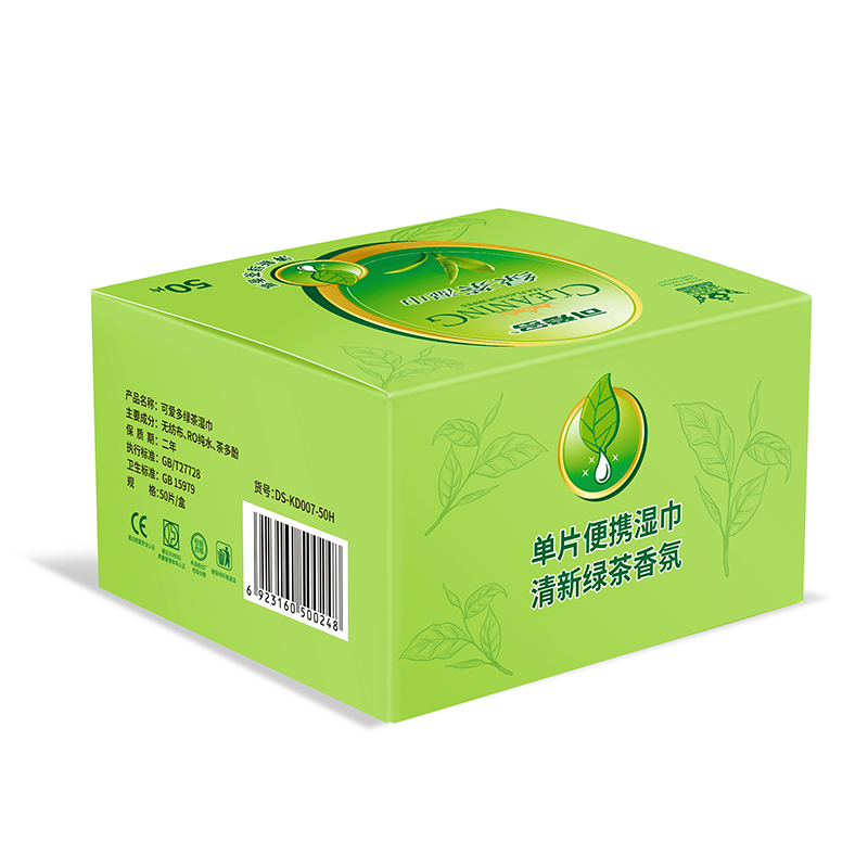 Cute and multi-wet wipes green tea wet wipes small bag to remove oil and wipe face portable carry-on wet wipes independent packaging 50 pieces