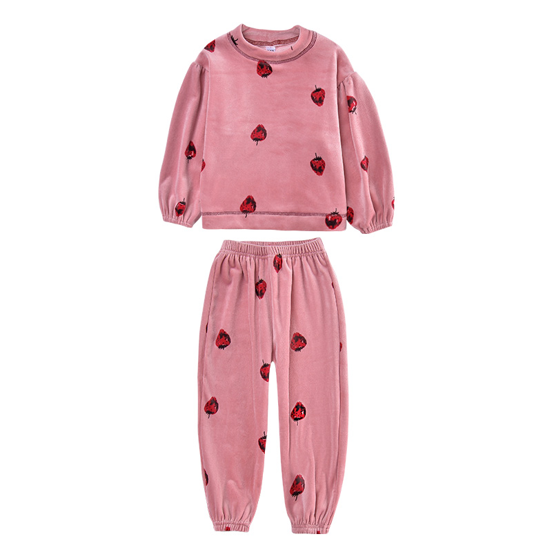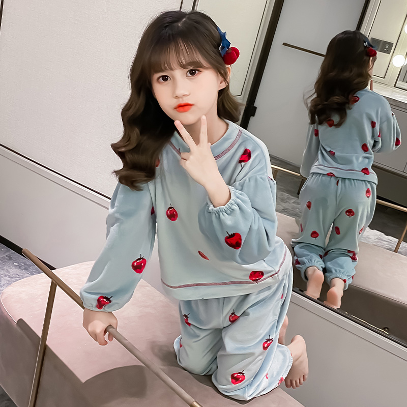 Children's coral velvet pajamas thin home clothes girls flannel home clothes big children winter autumn and winter thin velvet girls