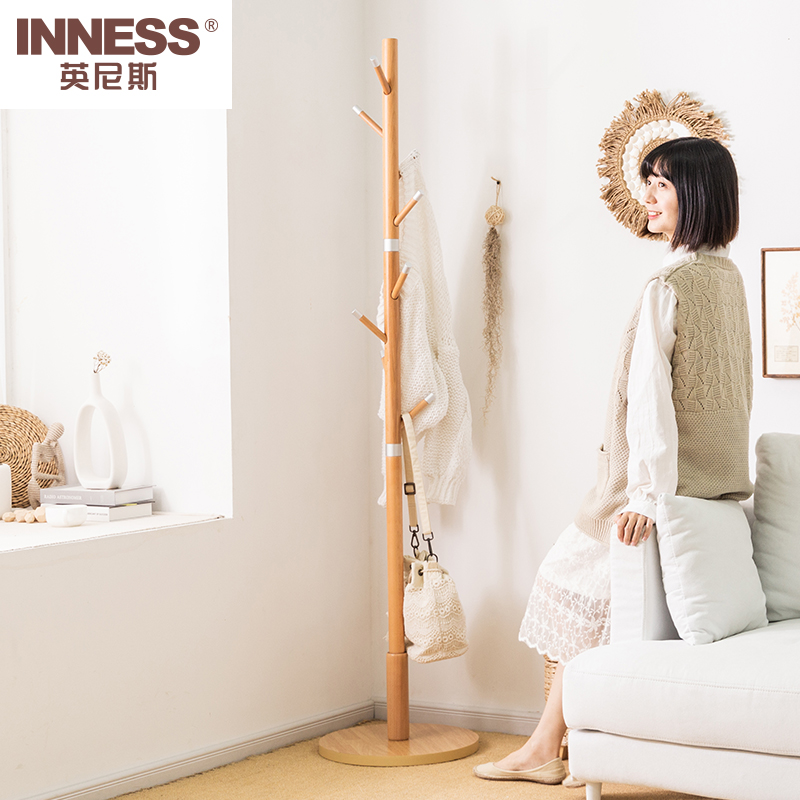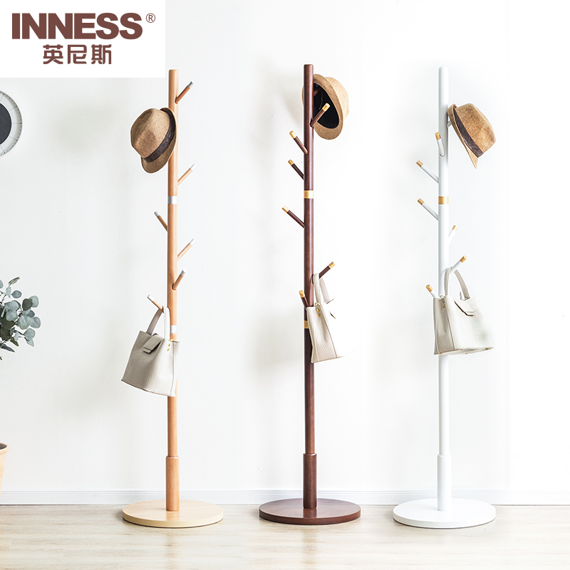 Innis solid wood coat rack Floor-to-ceiling bedroom hanger Single rod hanger Simple modern household clothes rack