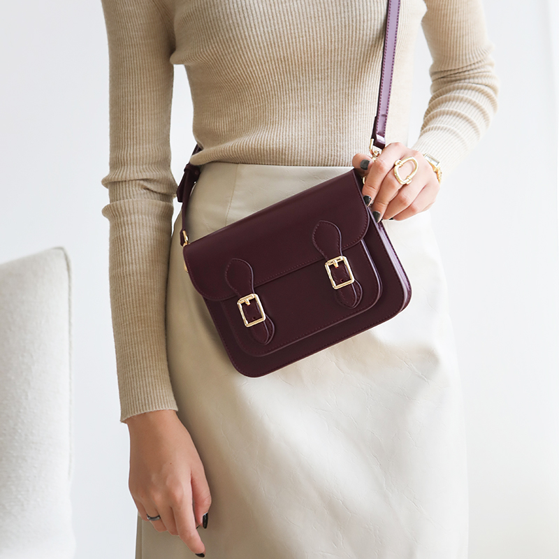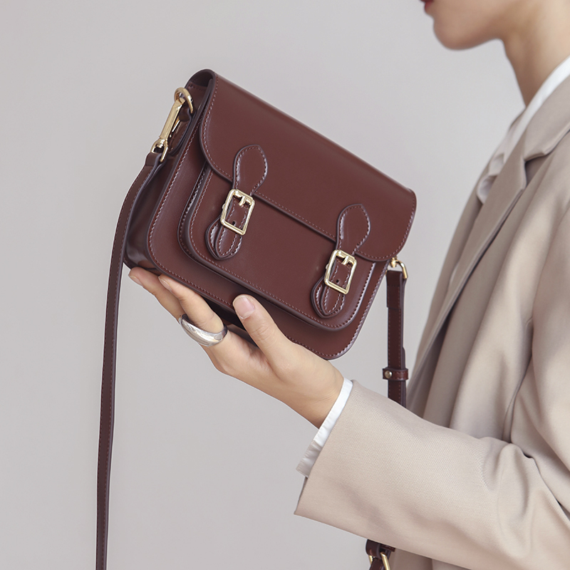 Original all-match simple college style retro postman Cambridge bag 2022 new leather shoulder Messenger small square bag for women