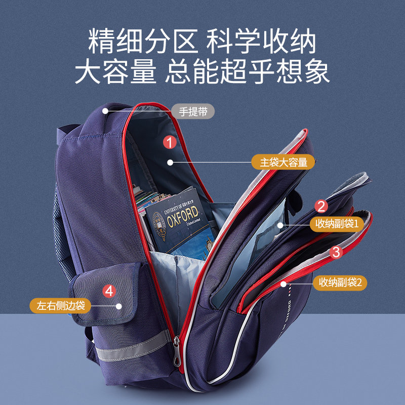 Oxford University children's school bag boy primary school students 3rd to 6th grade lightweight protective ridge load reduction shoulder bag one or two