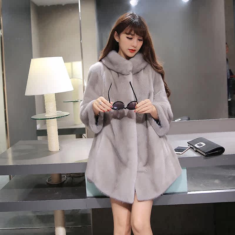 2021 new young imported purple label velvet mink fur coat women's mink fur coat mid-length