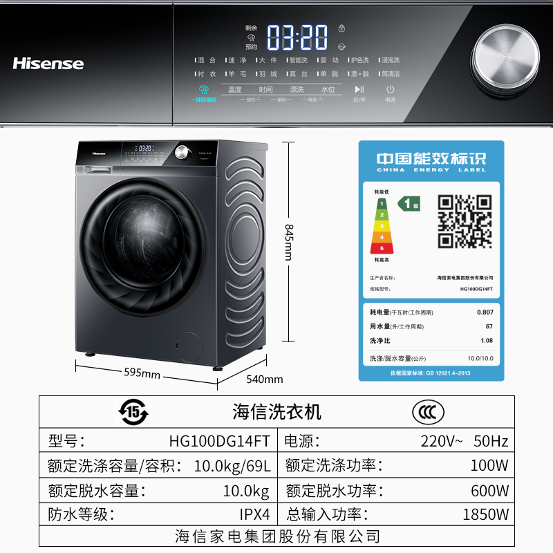 Haixin 10kg kg fully automatic home frequency conversion drum washing machine steam one-click of bacteria HG100DG14FT