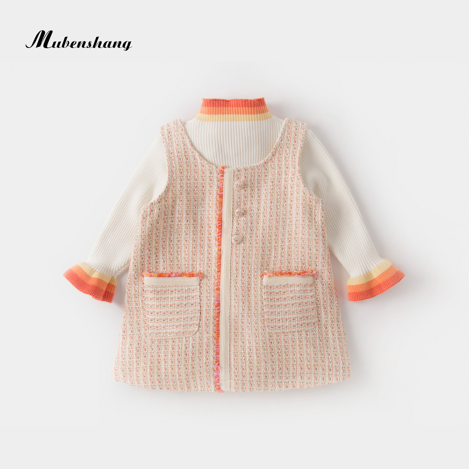 Wood Benchamps Girls Foreign Dress Winter Baby Vest Skirt Gush Thicken 2022 Autumn Winter New Little Balsamy Wind Skirts