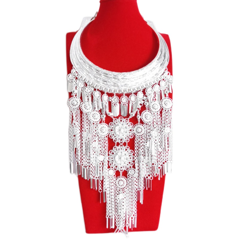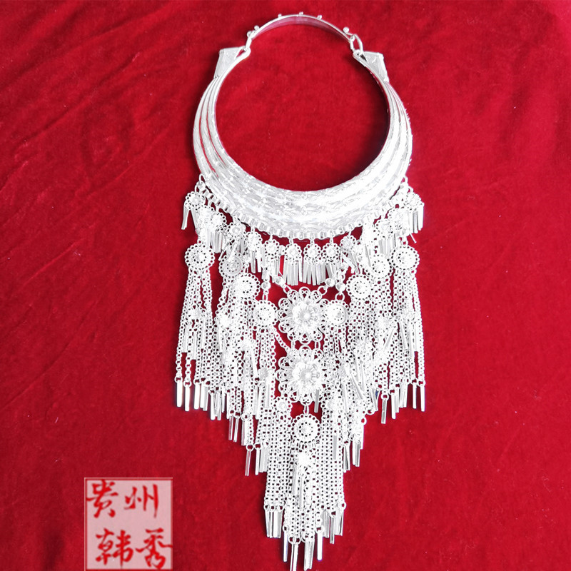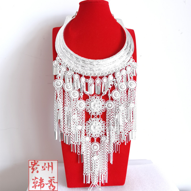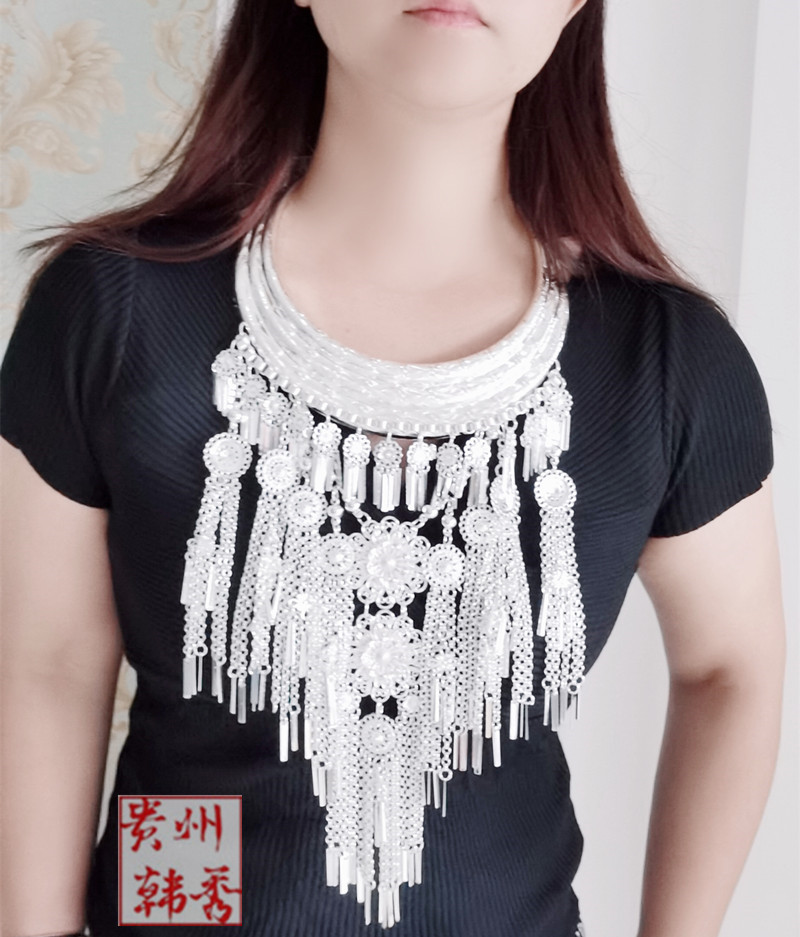 Ethnic Wind Collar Necklace necklace Guizhou Yunnan Guangxi Miao and Dong ethnic silver decorated head decorated with wearing item ring