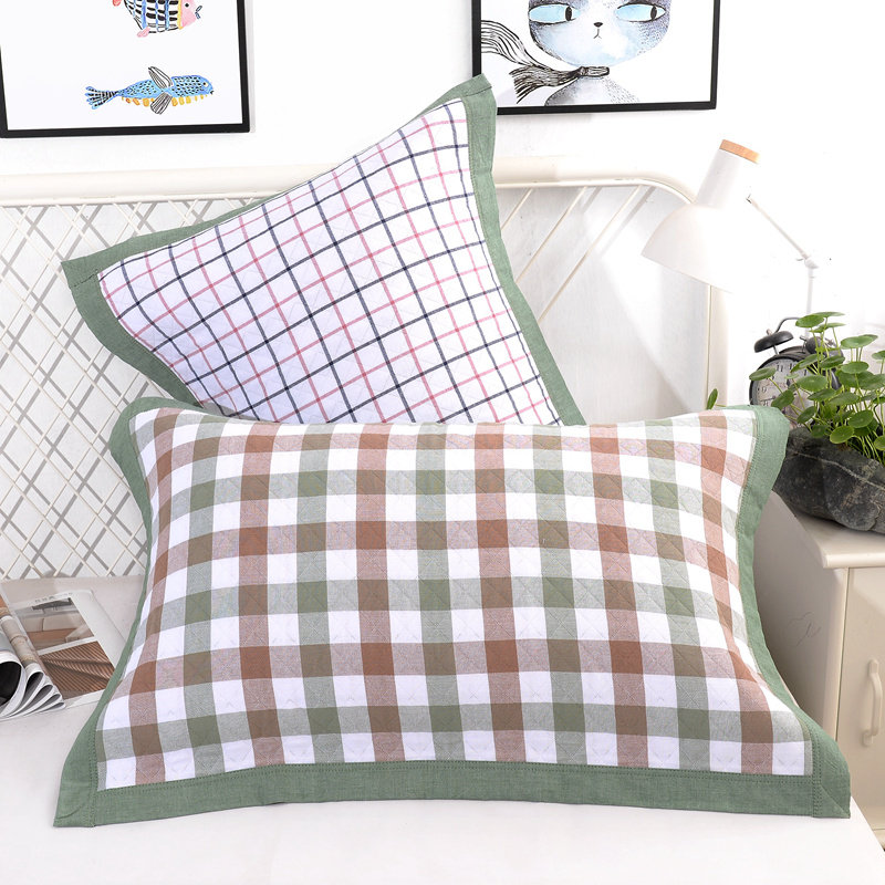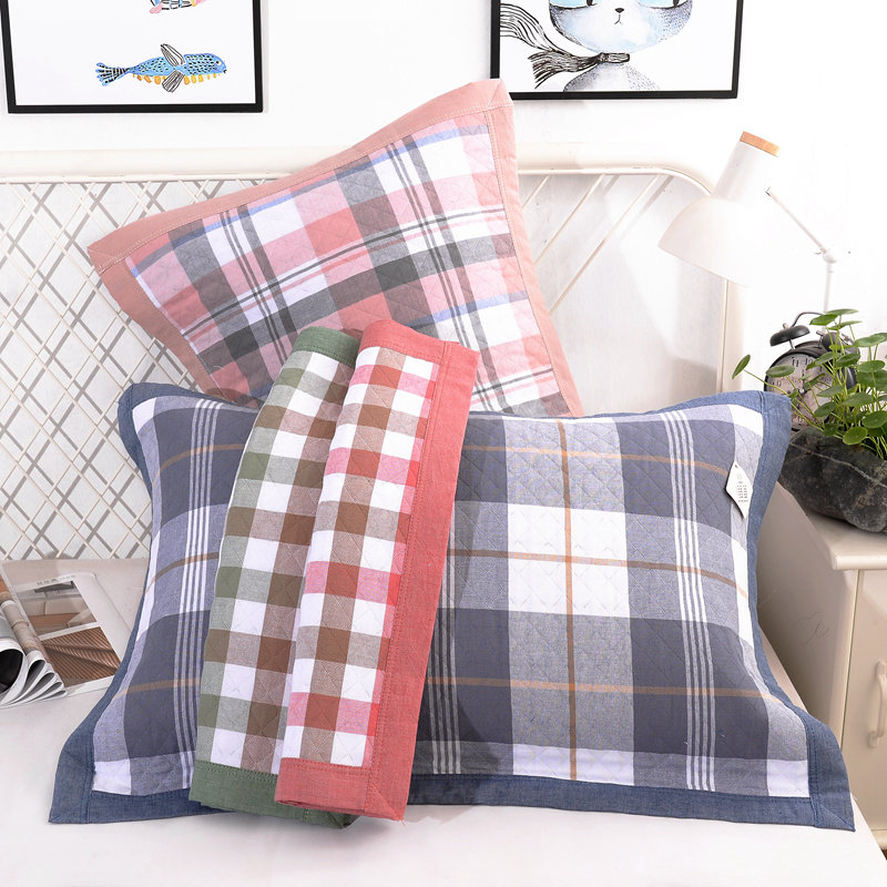 Plaid pillow towel pure cotton pair pack single four-layer gauze cover towel household cotton simple style Nordic adult whole towel