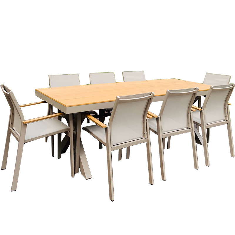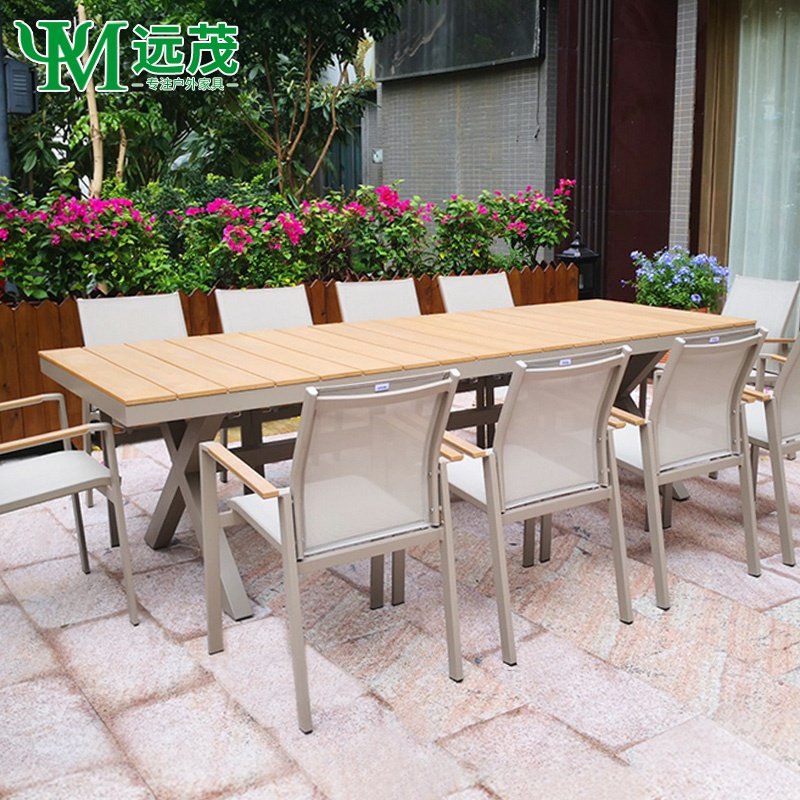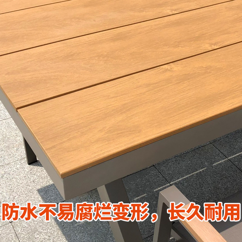 Far-lush net red Nordic outdoor casual table and chairs plastic wood embalming wood table long table Villa Courtyard Dining table and chairs Composition