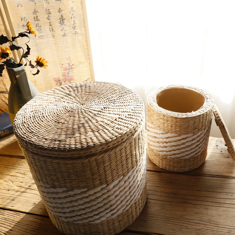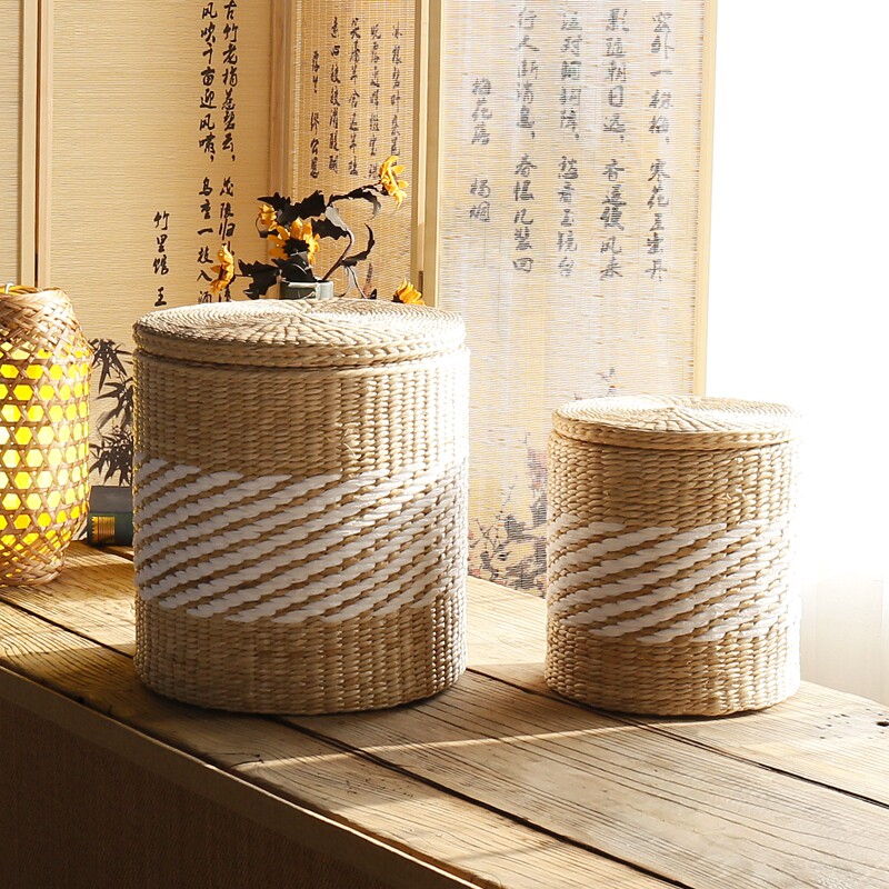 Tanyard straw choreography round containing changing shoes stool rattan wood sitting stool sofa stool short stool solid wood sitting pier storage to contain stools
