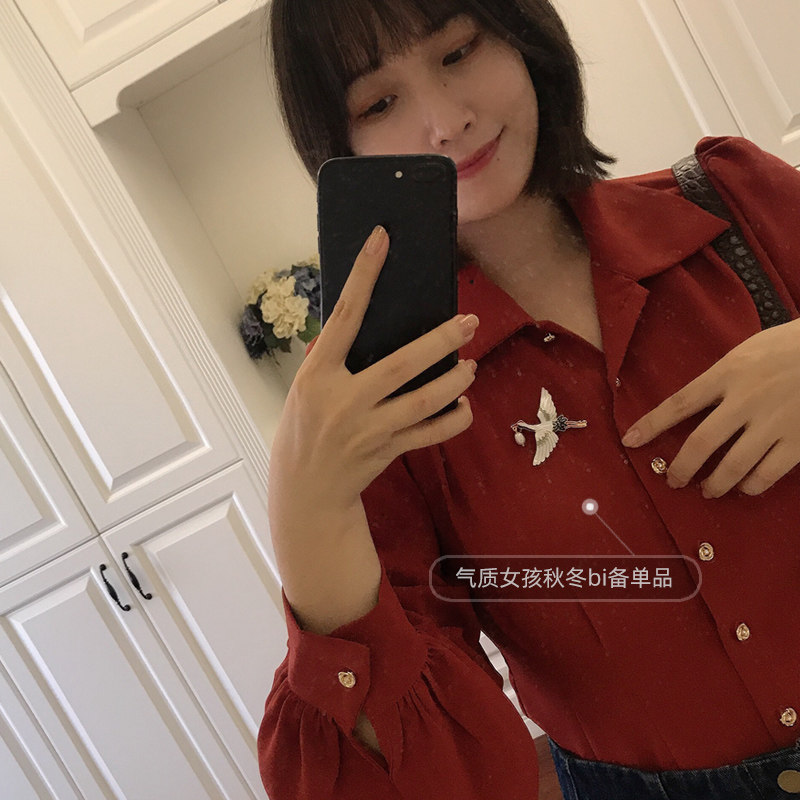 Crane cartoon brooch Chinese retro style elegant autumn and winter pearl silk scarf buckle corsage high-end female ins tide personality