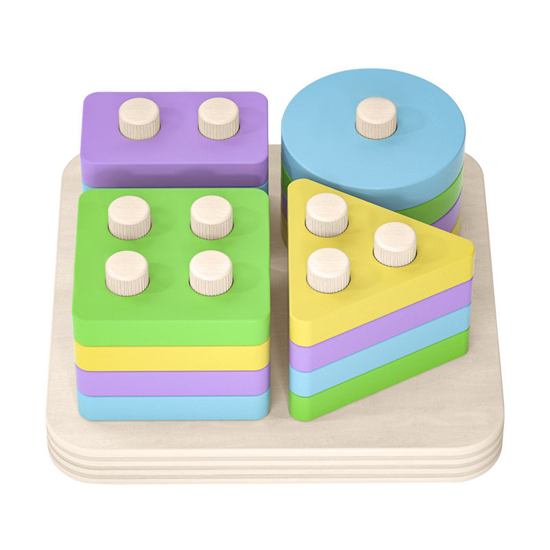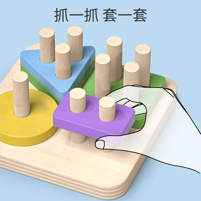 Four sets of columns Mont's early teaching puzzle toy geometric shape pairing teaching aids 1-2-year-old 3 children's baby building blocks wood