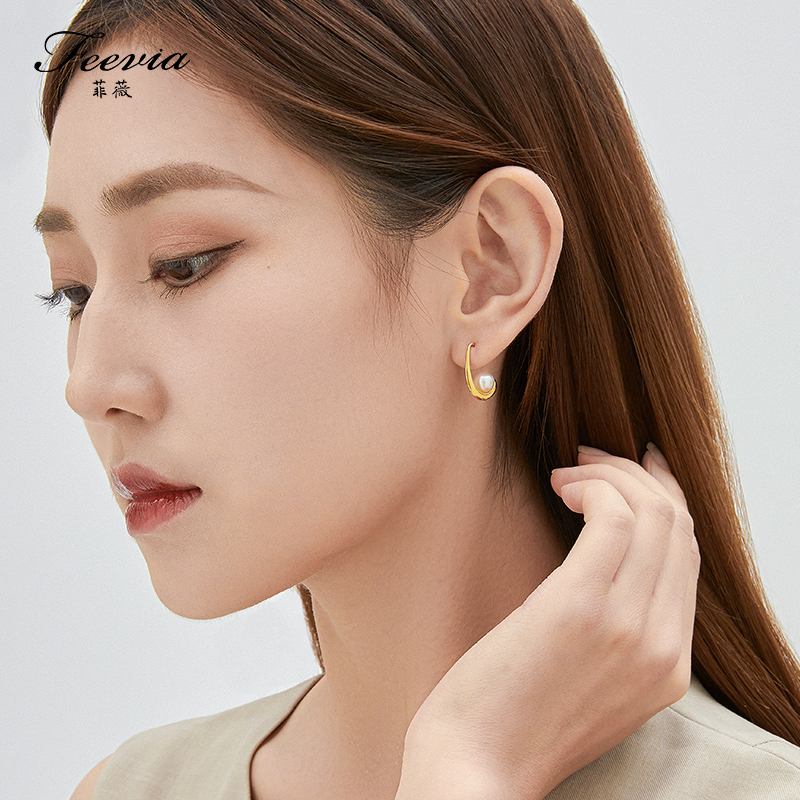 S925 sterling silver natural glare freshwater pearl earrings women's exquisite and simple earrings high-end earrings earrings accessories