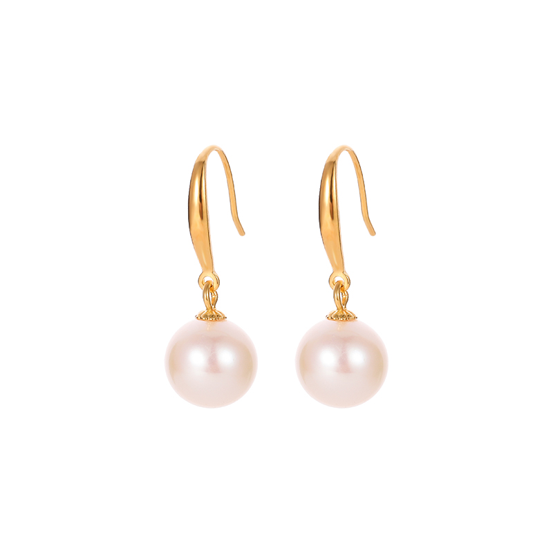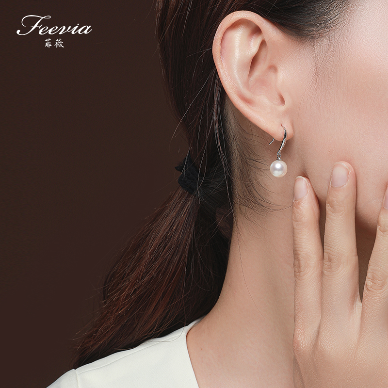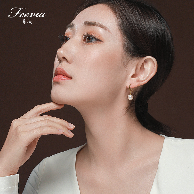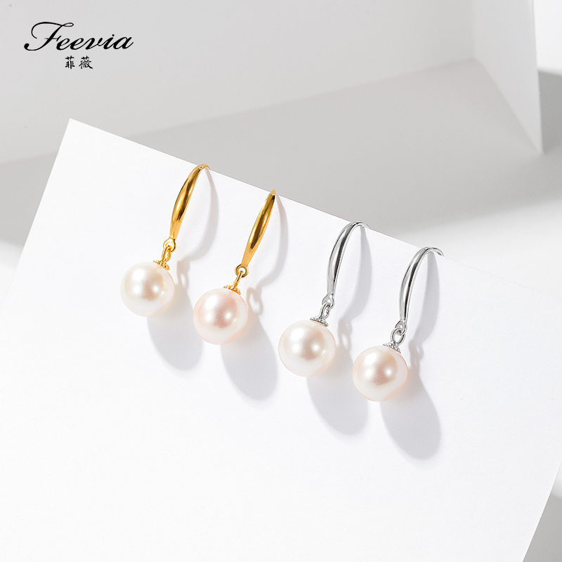 Feiwei Sterling Silver Freshwater Pearl Earrings Women's 18K Gold Earrings Temperament Fashion Classic Simple Earrings Holiday Gift