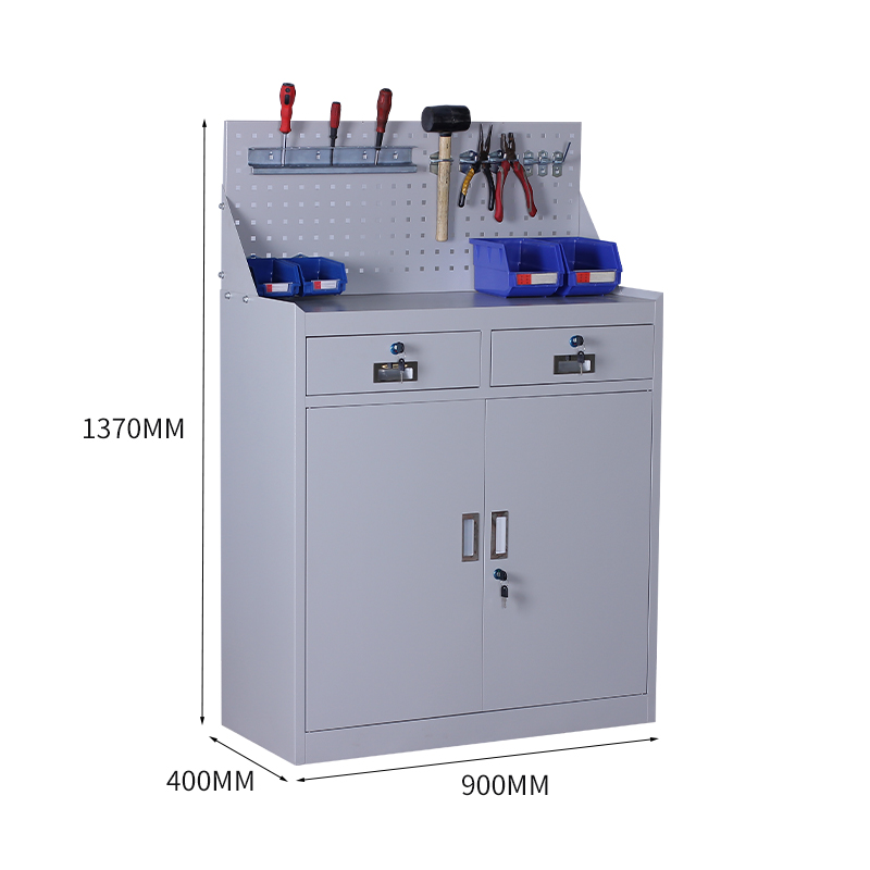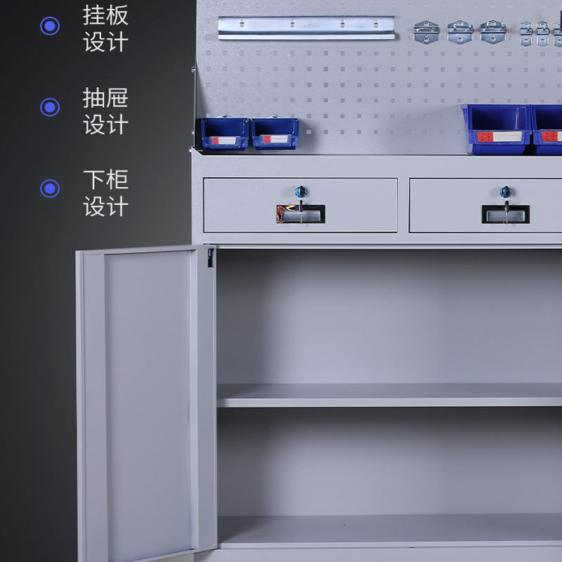 Gray hardware two-bucket tool cabinet Factory workshop workbench storage cabinet Double drawer low cabinet with hanging plate iron cabinet