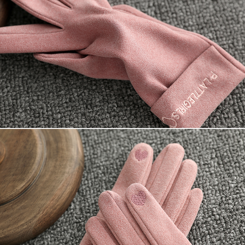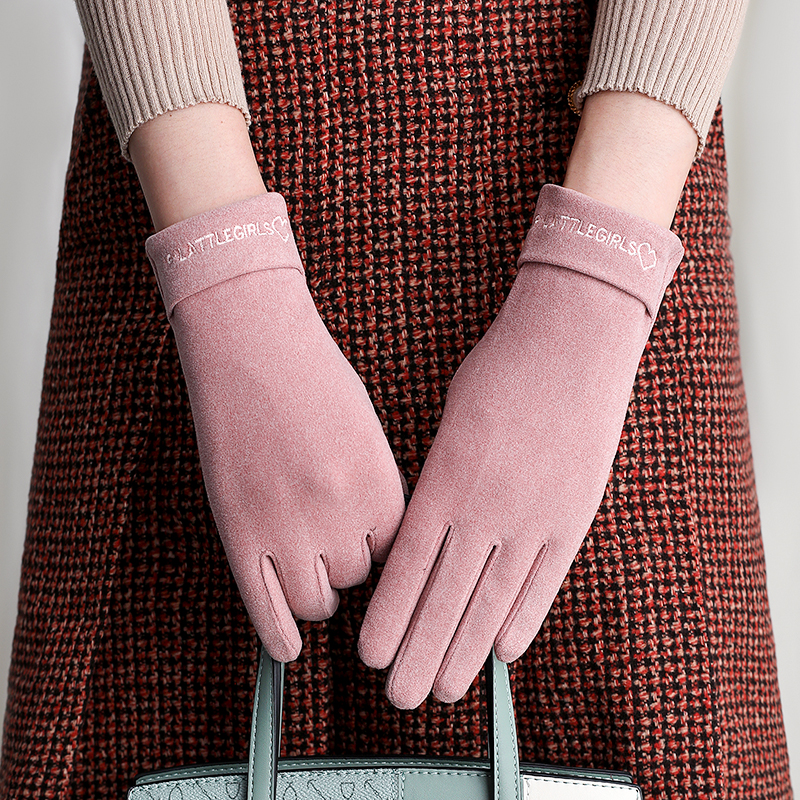 Gloves women's winter plus velvet warm and cold fashion Korean version of the touch screen cycling and driving spring and autumn windproof velvet gloves