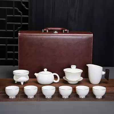 Lanolin jade porcelain 11 pieces of gold tracing tea set Lanolin jade porcelain 10 pieces of Shih Tzu pot Tracing gold tea set Lanolin jade porcelain 10 pieces of cover bowl Tracing gold tea set