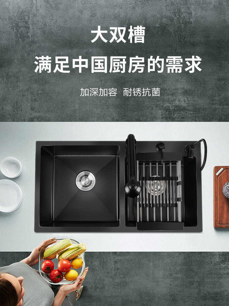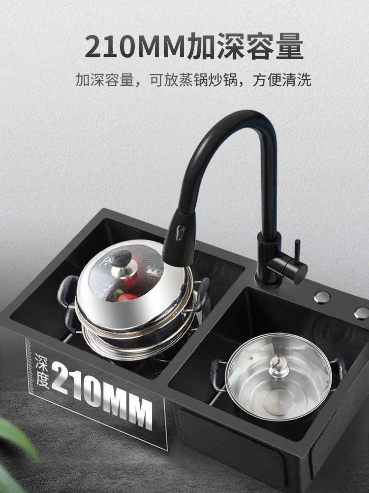 Tiva Black nano 304 stainless steel sink double slot kitchen sink Household handmade thickened large sink