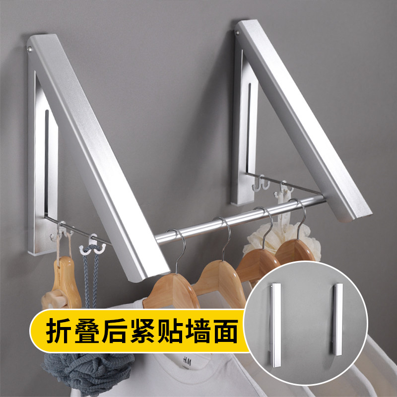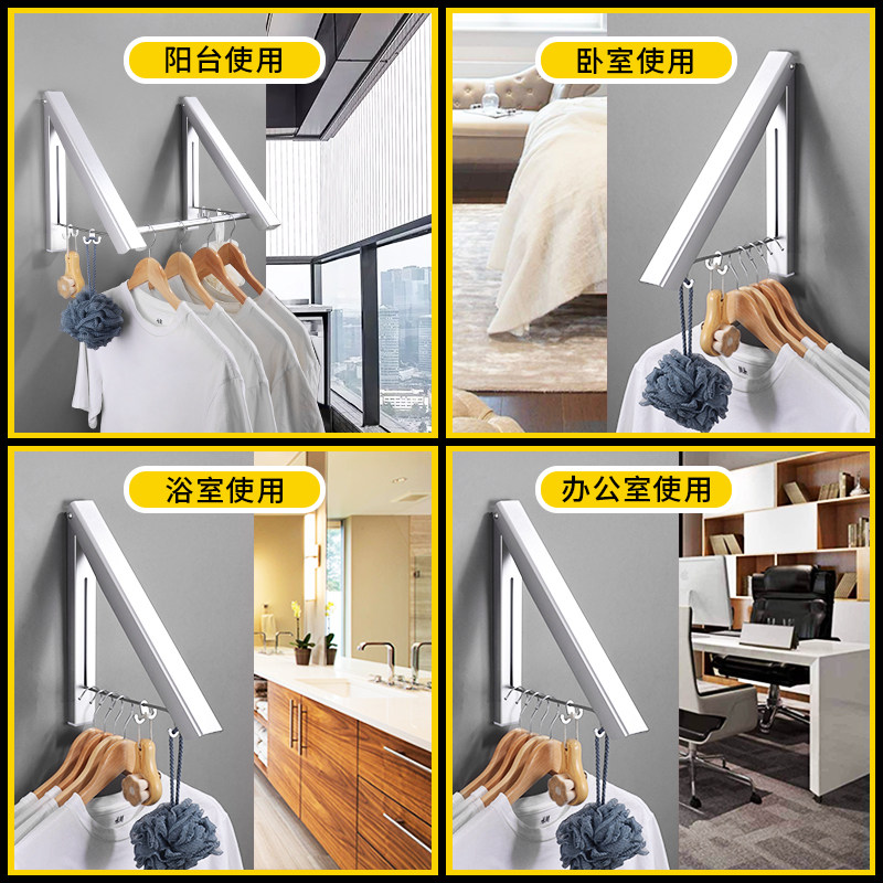Punch-free invisible drying rack indoor telescopic clothes rail wall hanging balcony window folding clothes drying artifact small