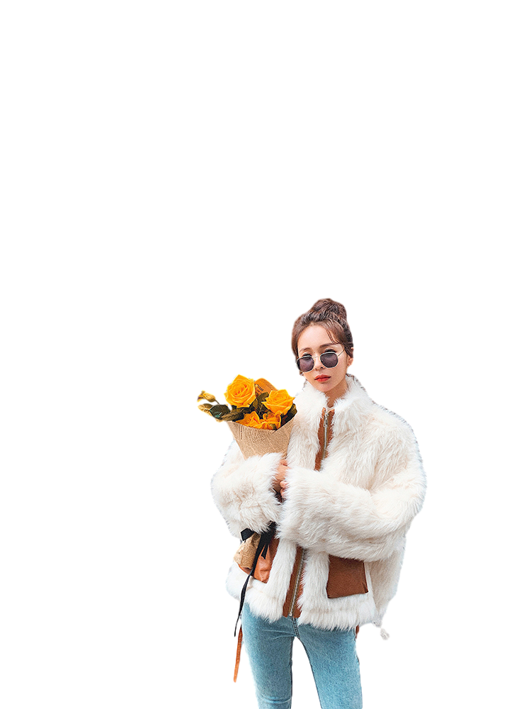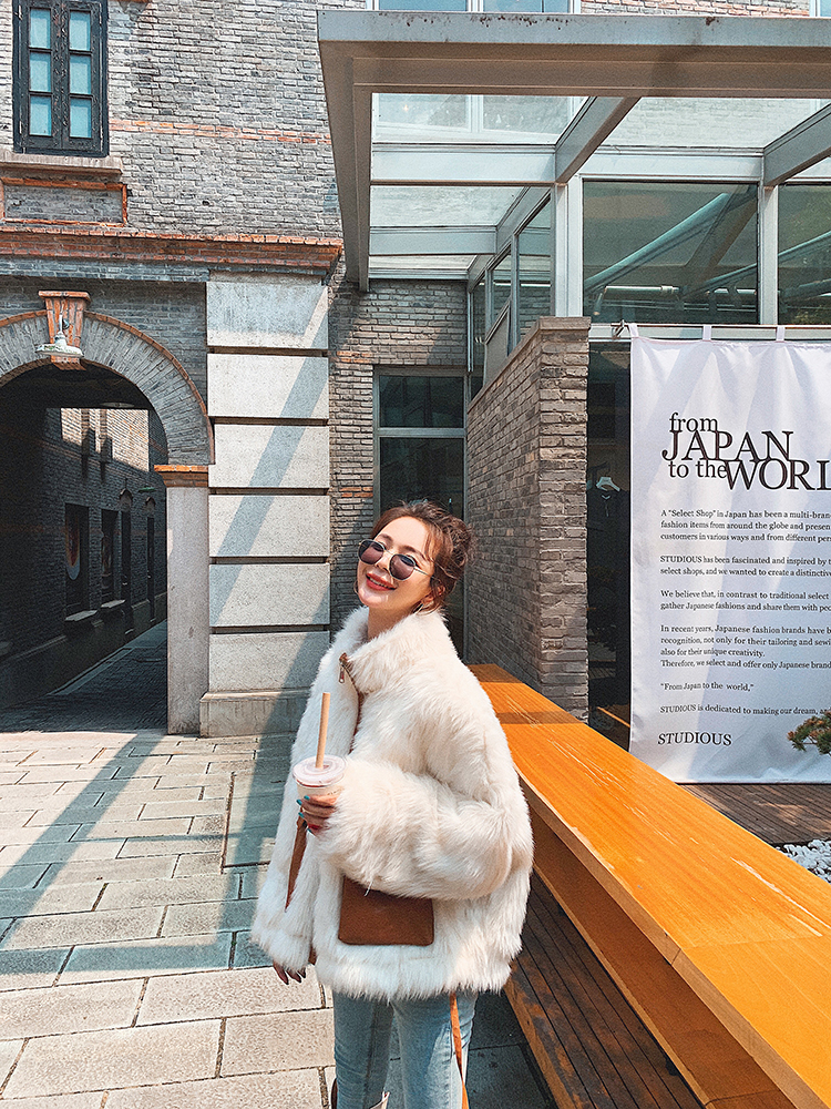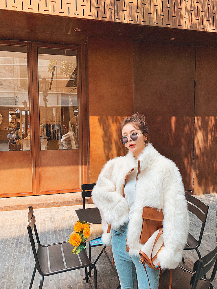 Lecea Alice lamb short coat girl 2023 new loose temperament fur one-body coat