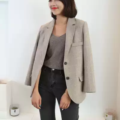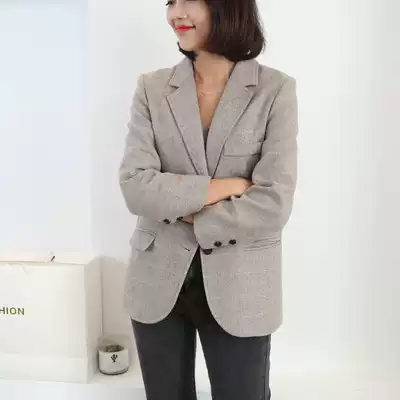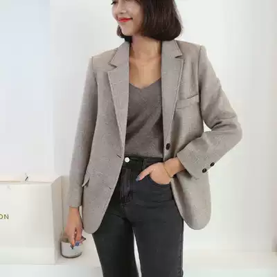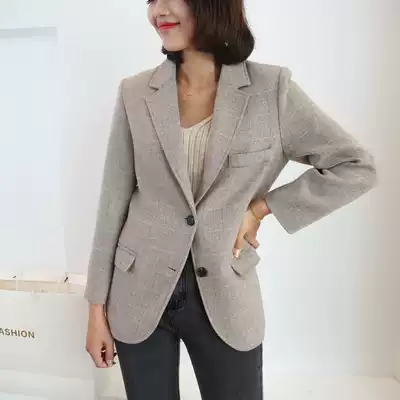 Autumn and winter new woolen coat female little man fashionable retro herringbone wild woolen suit female jacket thickened