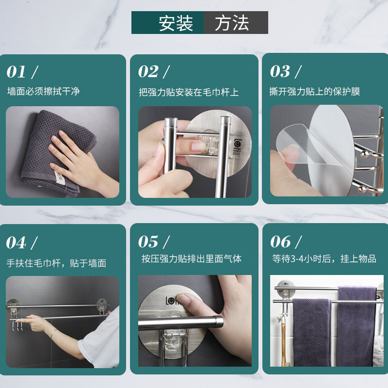 Bathroom towel bar double-bar stainless steel towel rack bathroom rack free punching kitchen home wall-mounted wall
