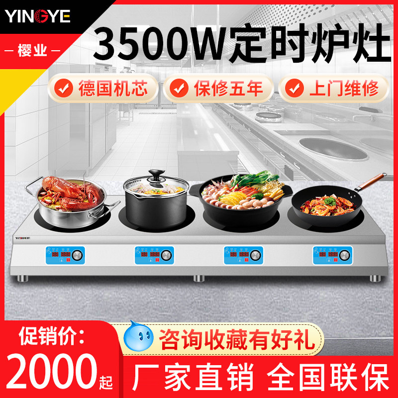 Electromagnetic oven commercial long - power 3500w stalls black crystal casserole powder tin paper 4 head cooker stove