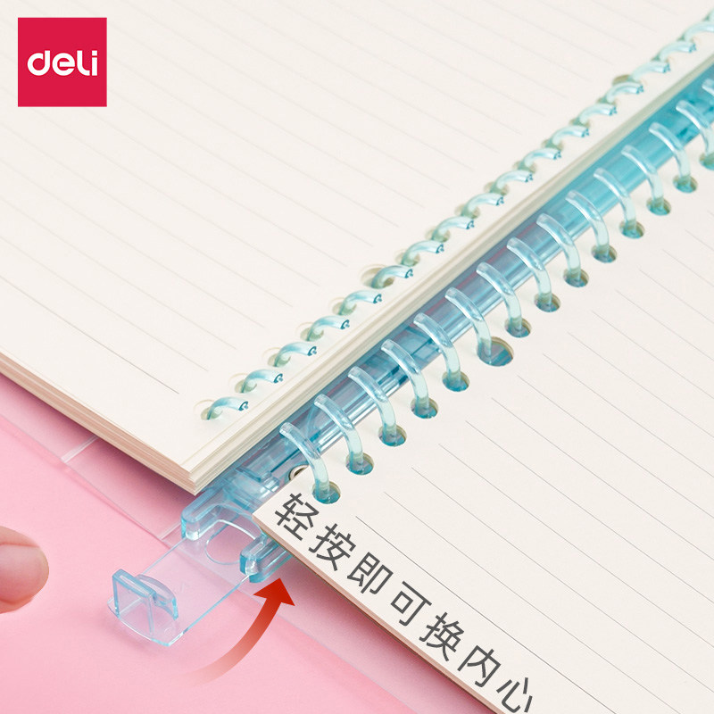 Deli QHA560 QHB560 transparent removable loose-leaf A5 B5 simple and fresh multi-color suitable for students and office workers hand account notebook Ultra-thick large capacity 120 pages 26 holes notes
