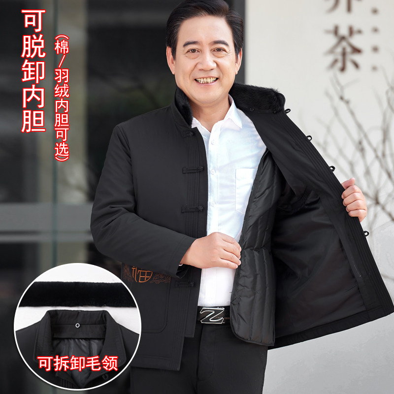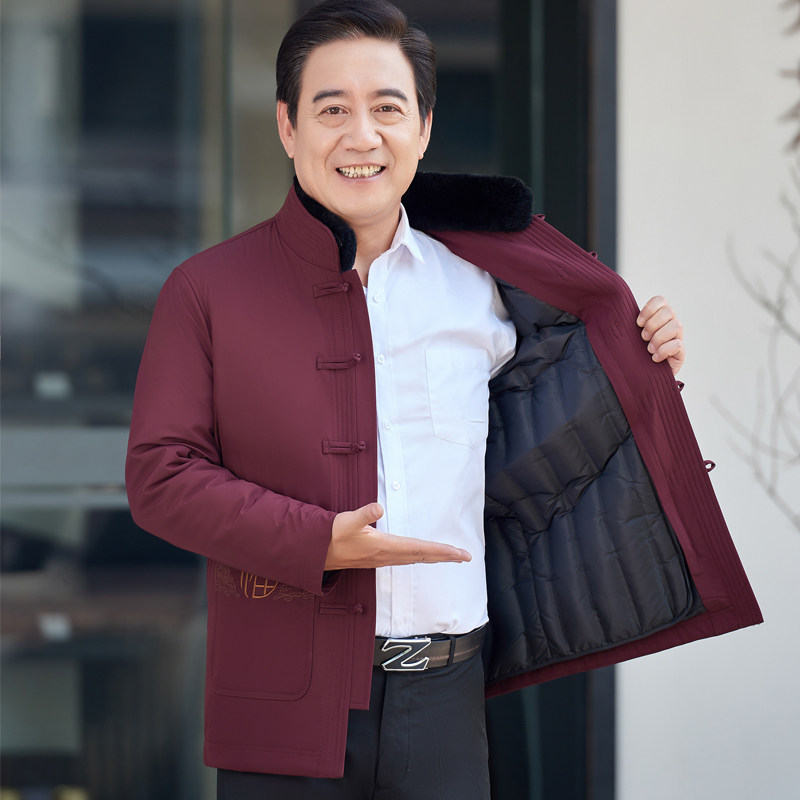 Tang dress men's middle-aged and elderly down jacket father thick autumn and winter coat grandpa can take off the red warm cotton clothing
