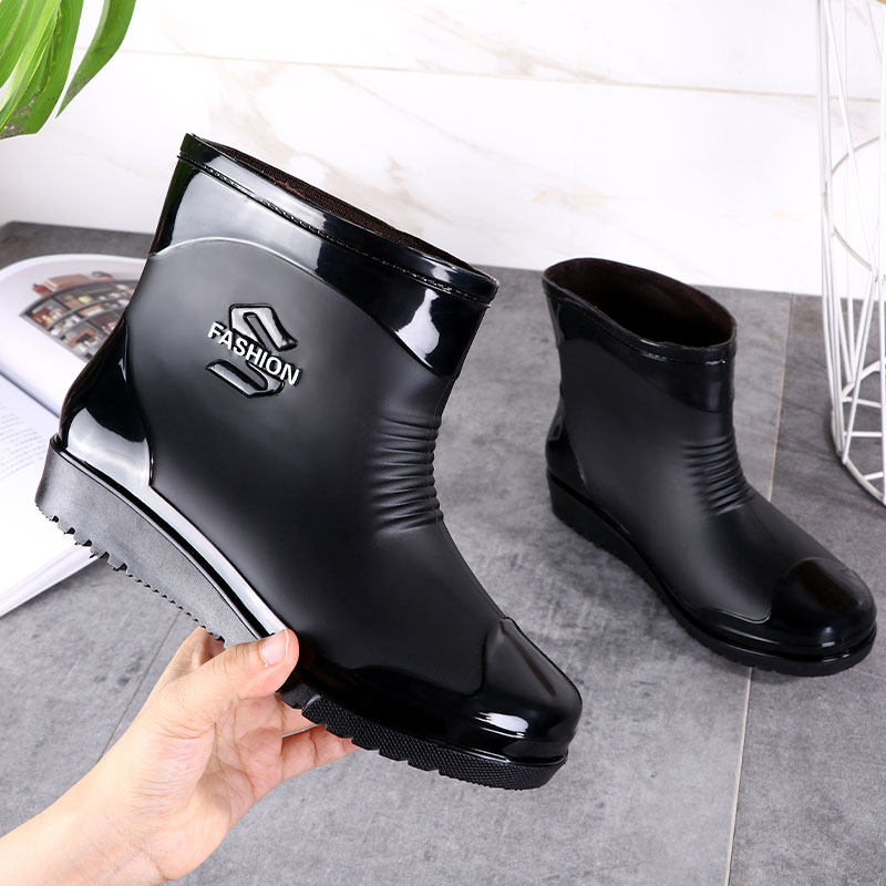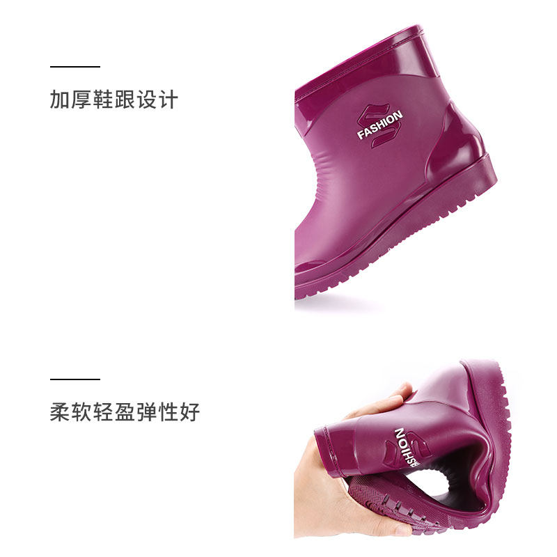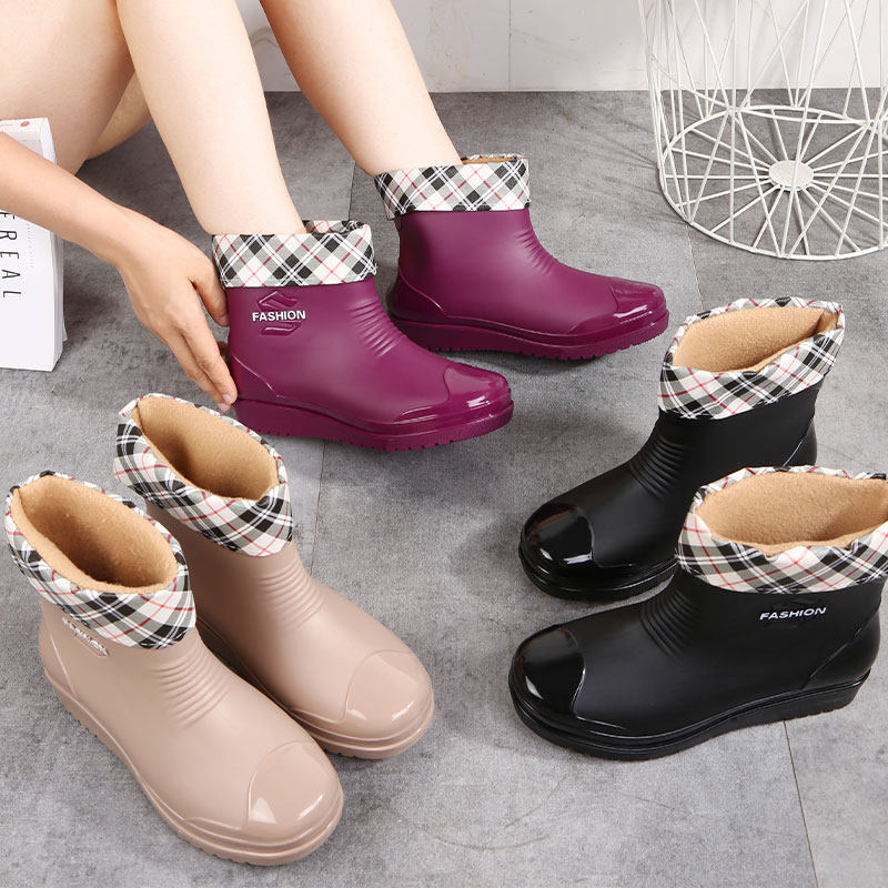 Lady Fashion Middle Cylinder Rain Shoes Woman Warm Plus Suede Rain Boots Outwear Waterproof Non-slip Short Cylinder Kitchen Abrasion Resistant Water Shoes Woman