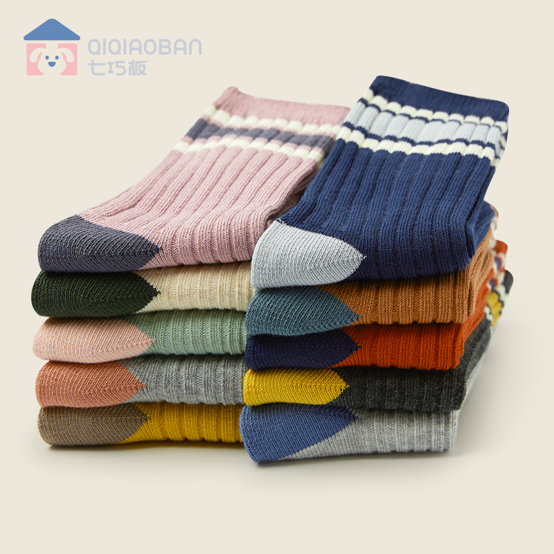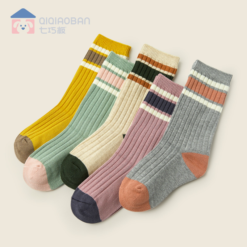 7 Dexterity Board Spring Autumn Money Children Socks Pure Cotton Socks Striped Boy Girl Girl Autumn Winter Great Boy Middle Cylinder High Cylinder Long Cylinder