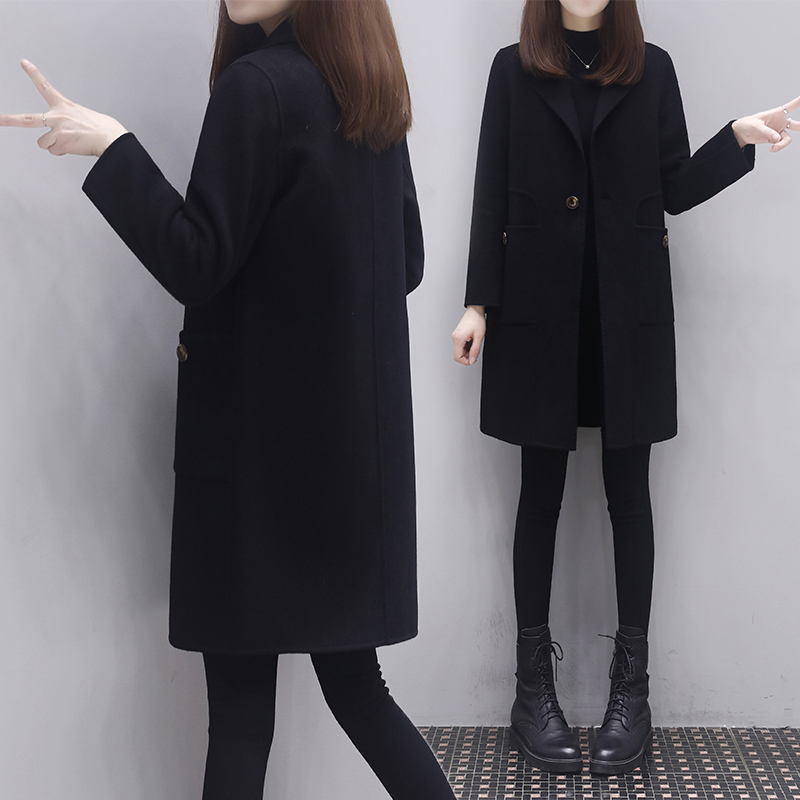 Double-sided cashmere coat women's 2022 spring new medium-length small loose and thin large size black woolen coat
