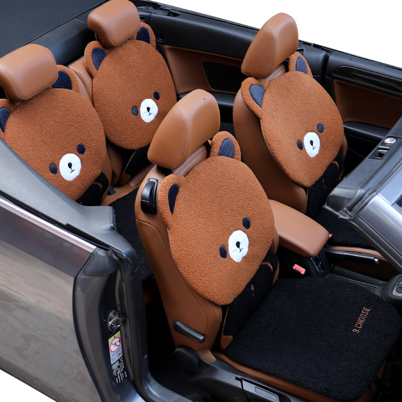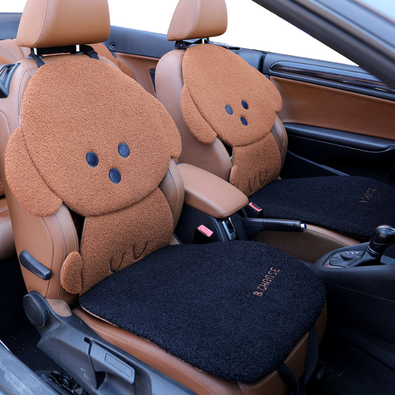 Front rear car seat cushion short pile monolithic fur cushion car cushion cute cartoon goddess winter bear car interior seat cushion