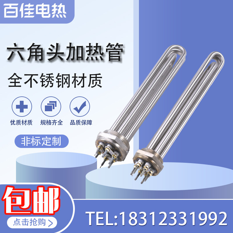 DN40DN50 electric heating tube 380v High power industrial water tank boiler Heat Oil Hexagon Head Heating Rod 220v