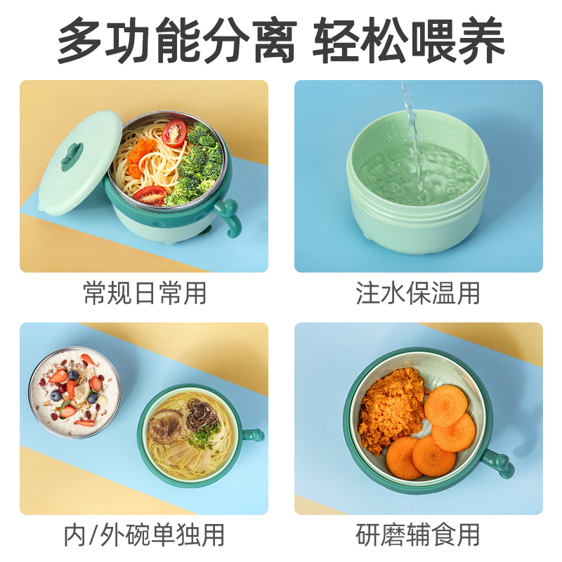 Baby water injection insulation bowl Baby stainless steel auxiliary food artifact Children's cutlery set anti-scalding anti-fall detachable