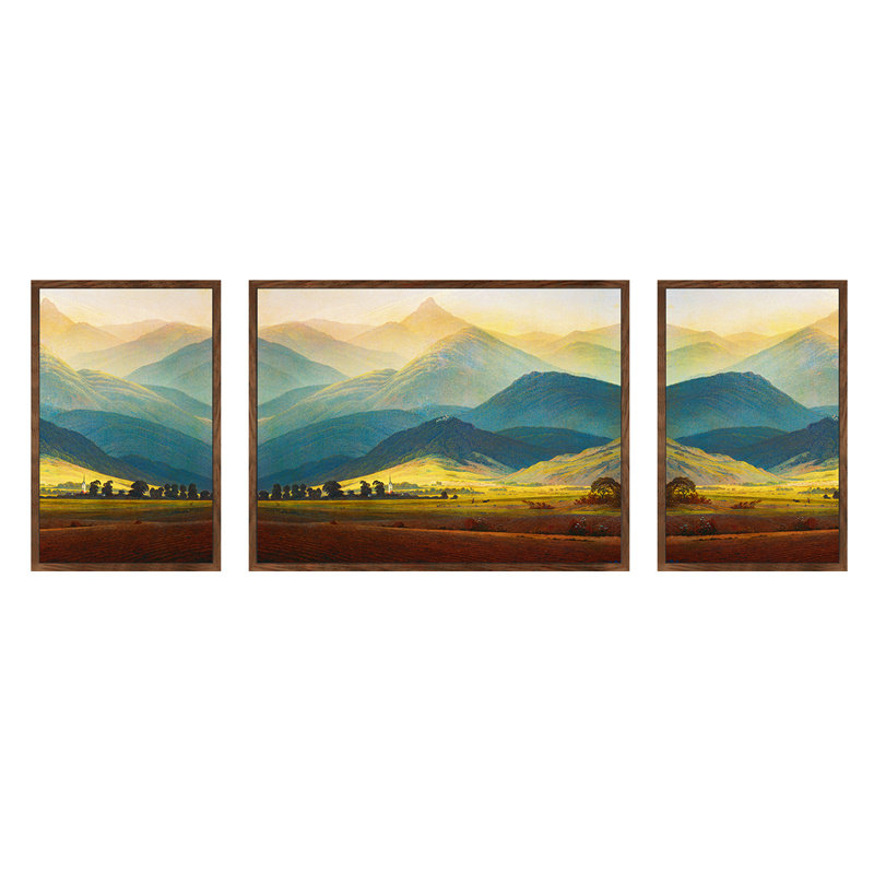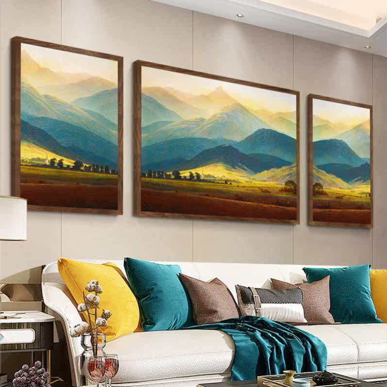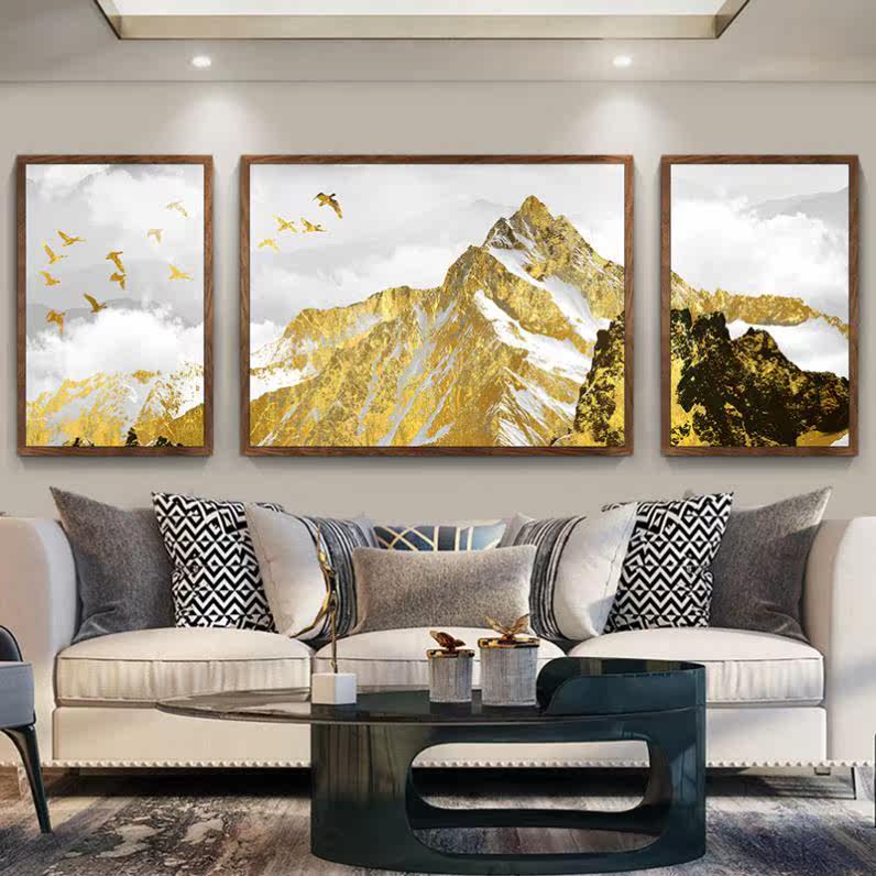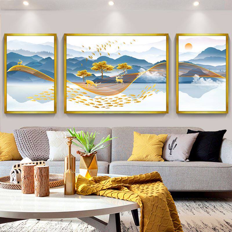 Back against Jinshan silver Mountain decoration painting Living room sofa Background wall Triple hanging painting elk light extravaganza Feng Shui Mural Paintings
