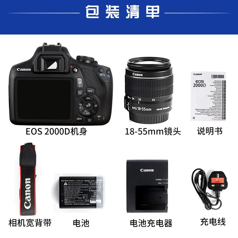 (Interest-free for three tranches) Canon Canon EOS 2000D 18-55mm III SLR Kit Novice Entry HD Digital Travel Travel Camera Schoolgirl Camera 4000D