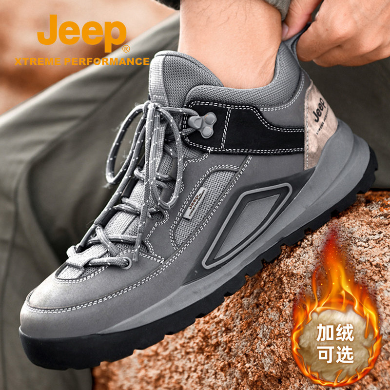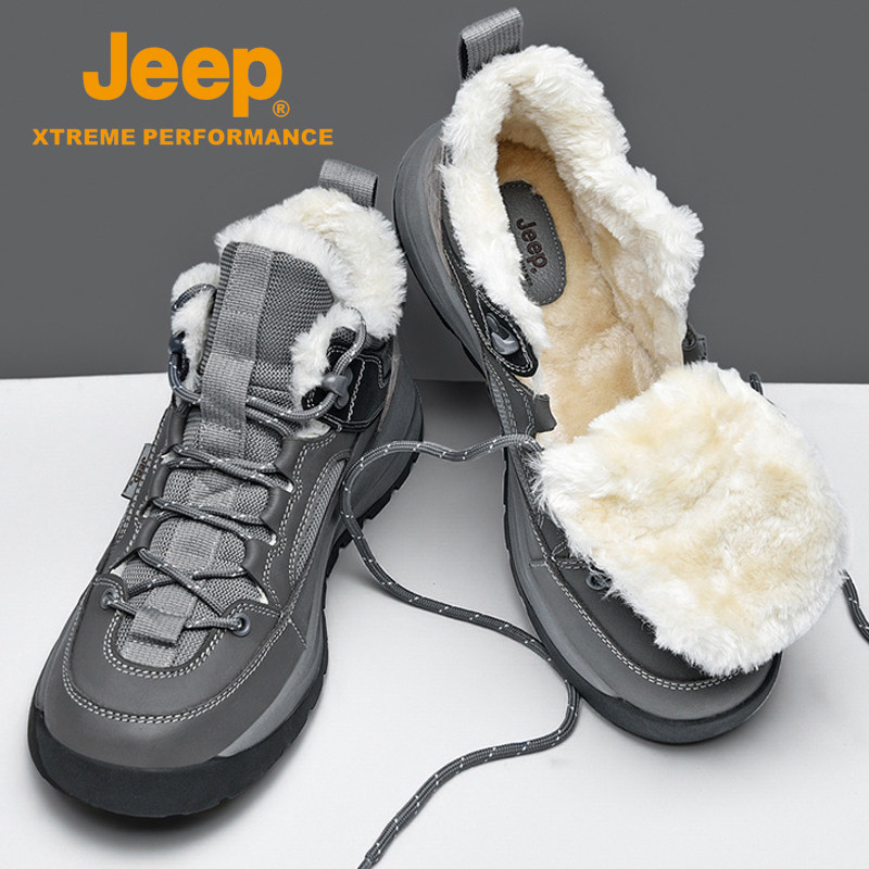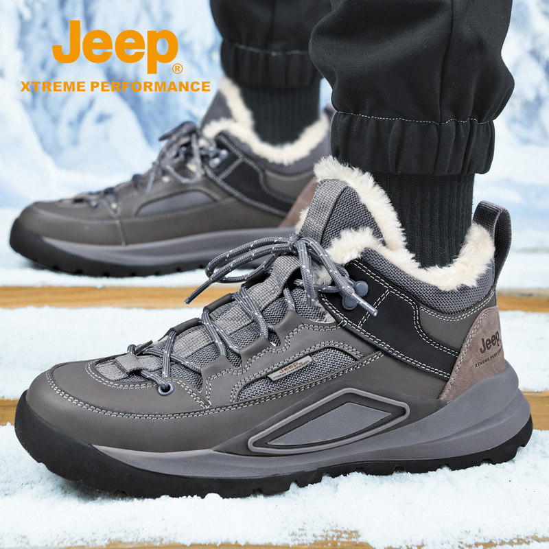 Jeep snow boots men's winter plus velvet warm Northeast big cotton shoes women's outdoor non-slip high-top mountaineering sports tide