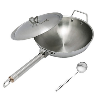 Original stainless steel frying pan Original stainless steel frying pan Qingtian fierce stove original stainless steel frying pan Titan fierce stove original stainless steel frying pan Chiyan double-headed furnace fire maple stainless steel telescopic spoon