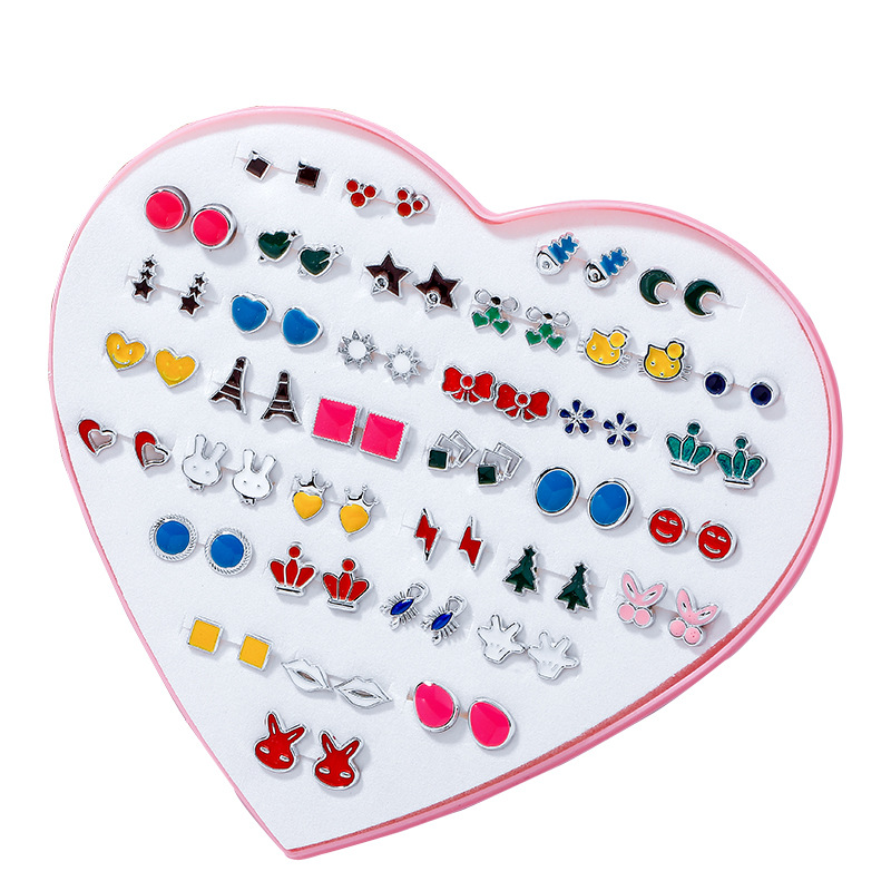 New 36 pairs of oil - dripping flower plastic needle ear needle set small fresh peach box soft cereal ring woman