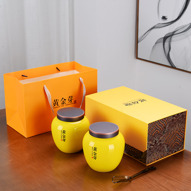 Gold Sprout Tea Packaging Gift Box Empty Box Large Size Half Catty Gold Buds Ceramic Tea Seal Tank Damp custom