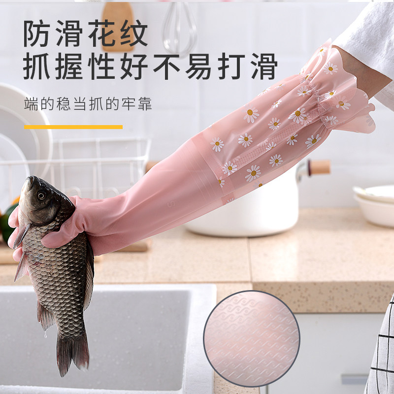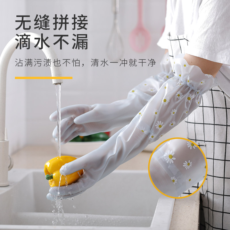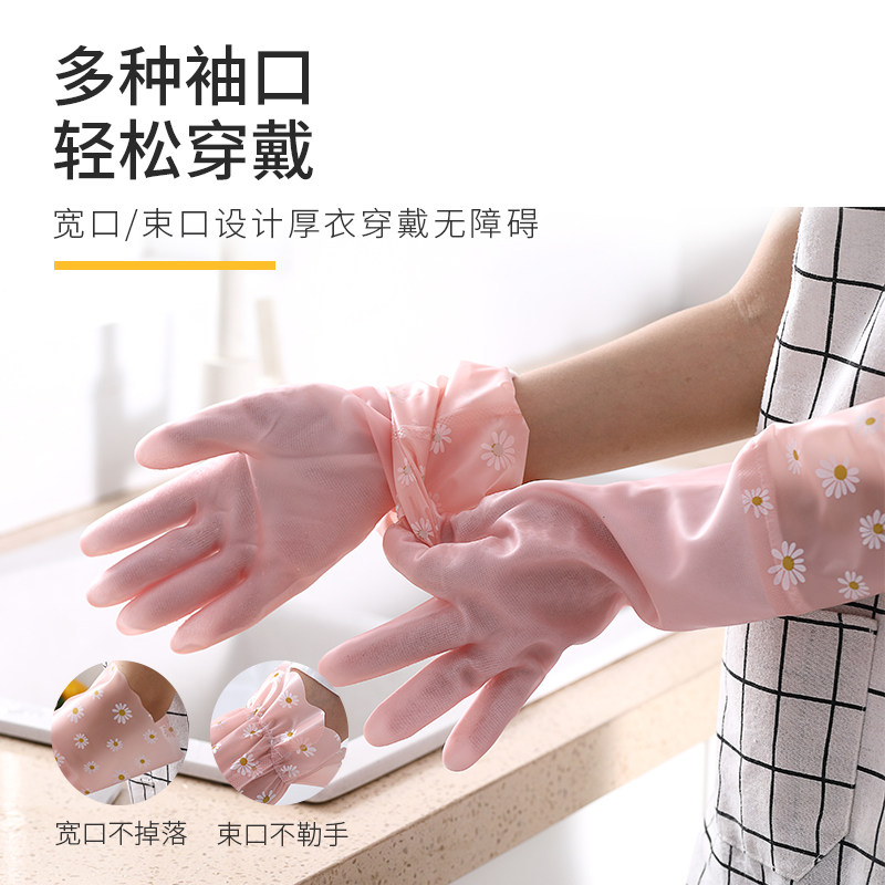 Dishwashing gloves Women's kitchen home rubber latex laundry plus plus plush thick housework waterproof winter durable rubber