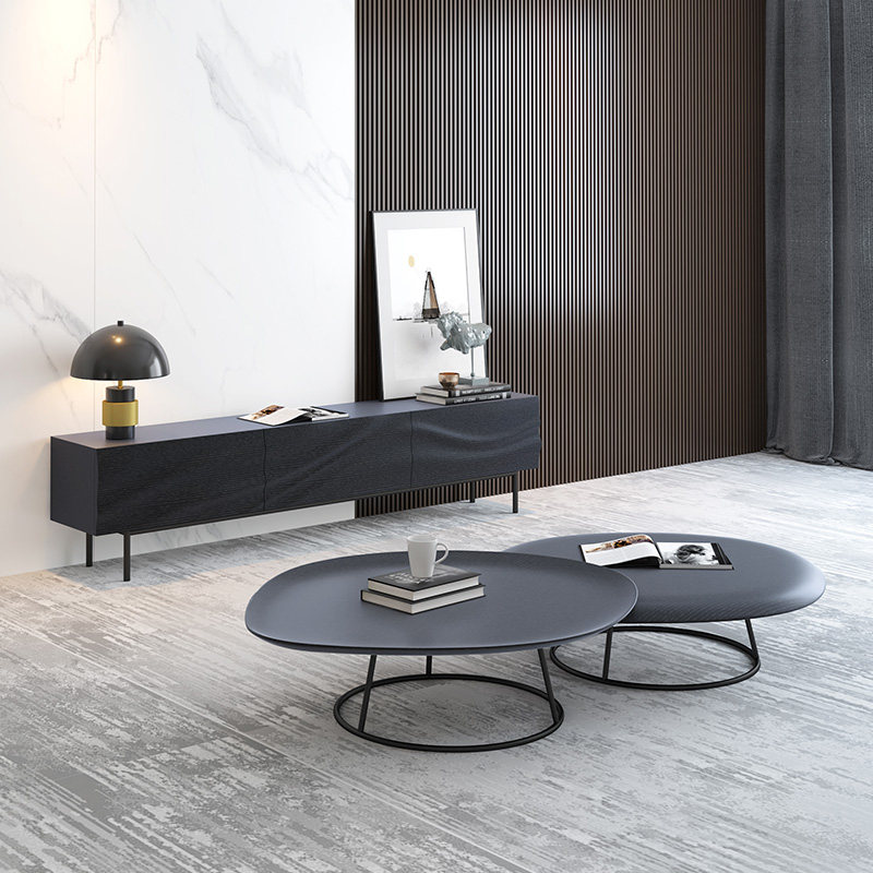 Black walnut TV cabinet coffee table combination Nordic light luxury solid wood modern minimalist Japanese creative TV floor cabinet