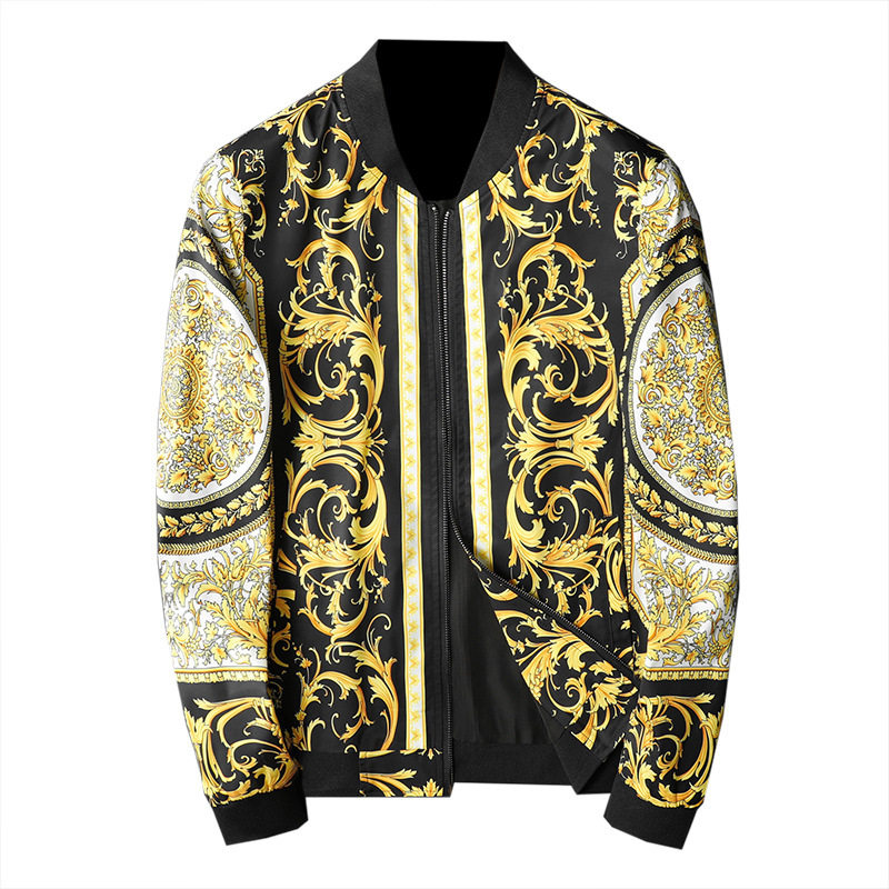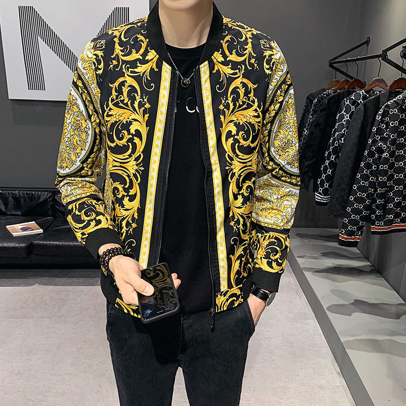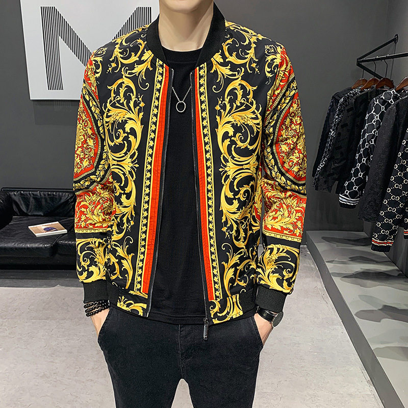 Tide brand men's personalized printed thin jacket autumn new European station palace style men's printed stand-up collar jacket