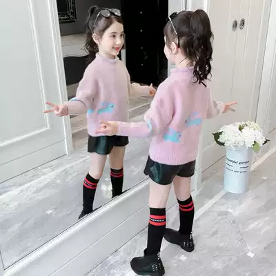 Girls ' semi-turtleneck sweater autumn and winter new mink velvet plus velvet thickening children's knitwear Western style bottoming knitwear women