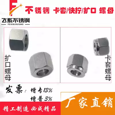 304 stainless steel ferrule nut copper pipe joint stainless steel double ferrule hose quick screw coupling nut lock female
