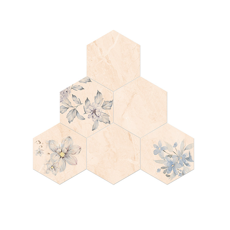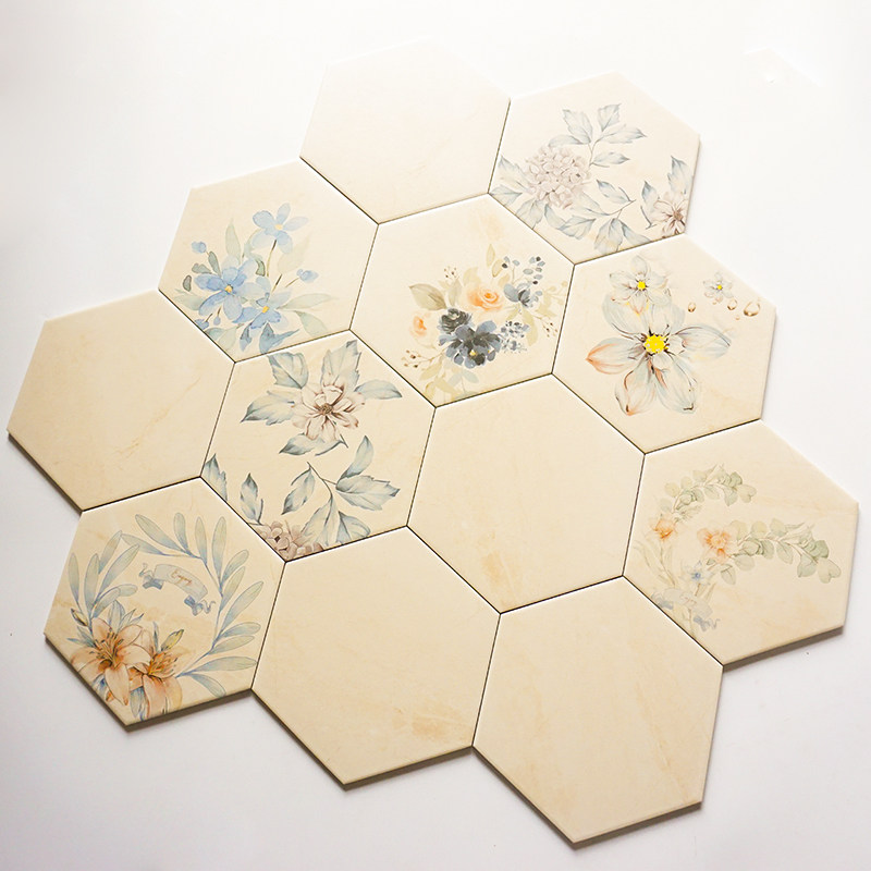 Beige flower pattern hexagonal brick Nordic kitchen bathroom tile hexagonal wall brick hot pot shop flower brick