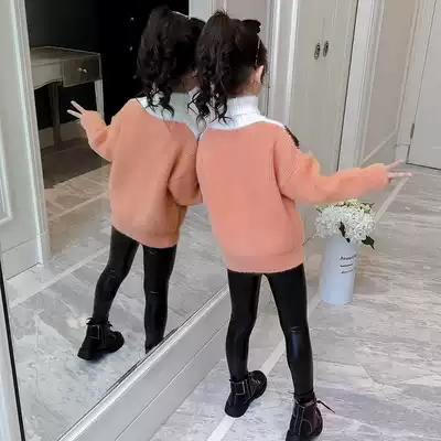 7 Girls ' turtleneck sweater pullover 2021 new style 9 middle and large children's Western style 3-year-old girl 4 plus velvet thickening 6 autumn and winter clothes 8