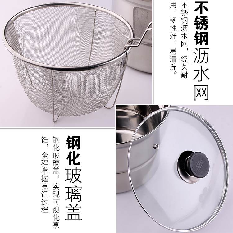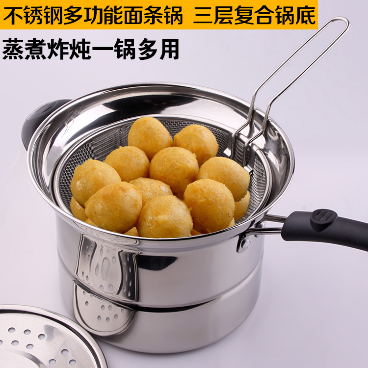 Stainless steel multifunction noodle pan milk pan thickened stockpot small fryer steam boiler cooking pot induction cookware gas universal