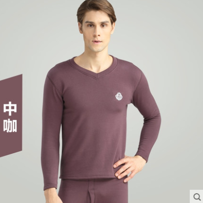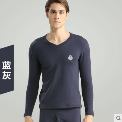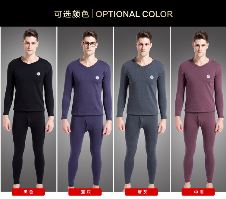 Duocai Men's Thermal Underwear V-neck Thickening Plus Velvet Youth Slim Cold-resistant Cotton Sweater Long Clothes and Long Trousers Set Winter