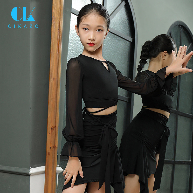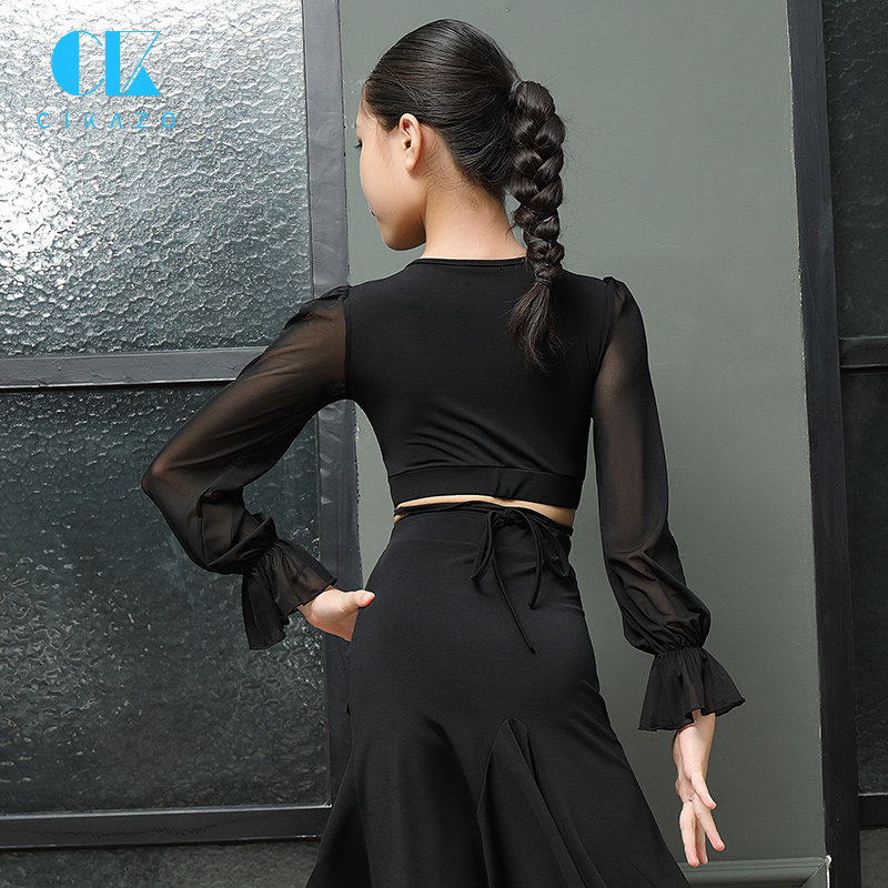Sikaso Latin Dance Costume Girl Autumn Winter Long Sleeve Tops Children's New Professional Training Suit Practice Suit G1164